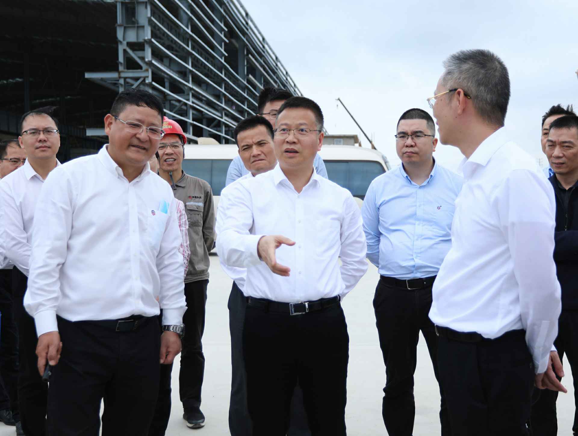 4月12日下午,市委书记谭丕创深入港口区,就推进重大项目建设进行专题调研。图为谭丕创在米乐在线登录官网-米乐(中国)下游产业链——高强度耐磨新材料项目部现场调研。